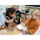 Die Kinder der Klassen 3. und 4. Klassen erhielten (passend zum vorher bearbeiteten Sachunterrichtsthema) eine Präsentation zu den Nahrungsmitteln, Rohstoffen und Verarbeitungsschritten etc. Danach wurde gebacken. Die Kinder lernten Produktionsprozesse einer Großbäckerei kennen, durften aber auch eigene Kekse ausstechen, verzieren, verpacken und natürlich probieren.